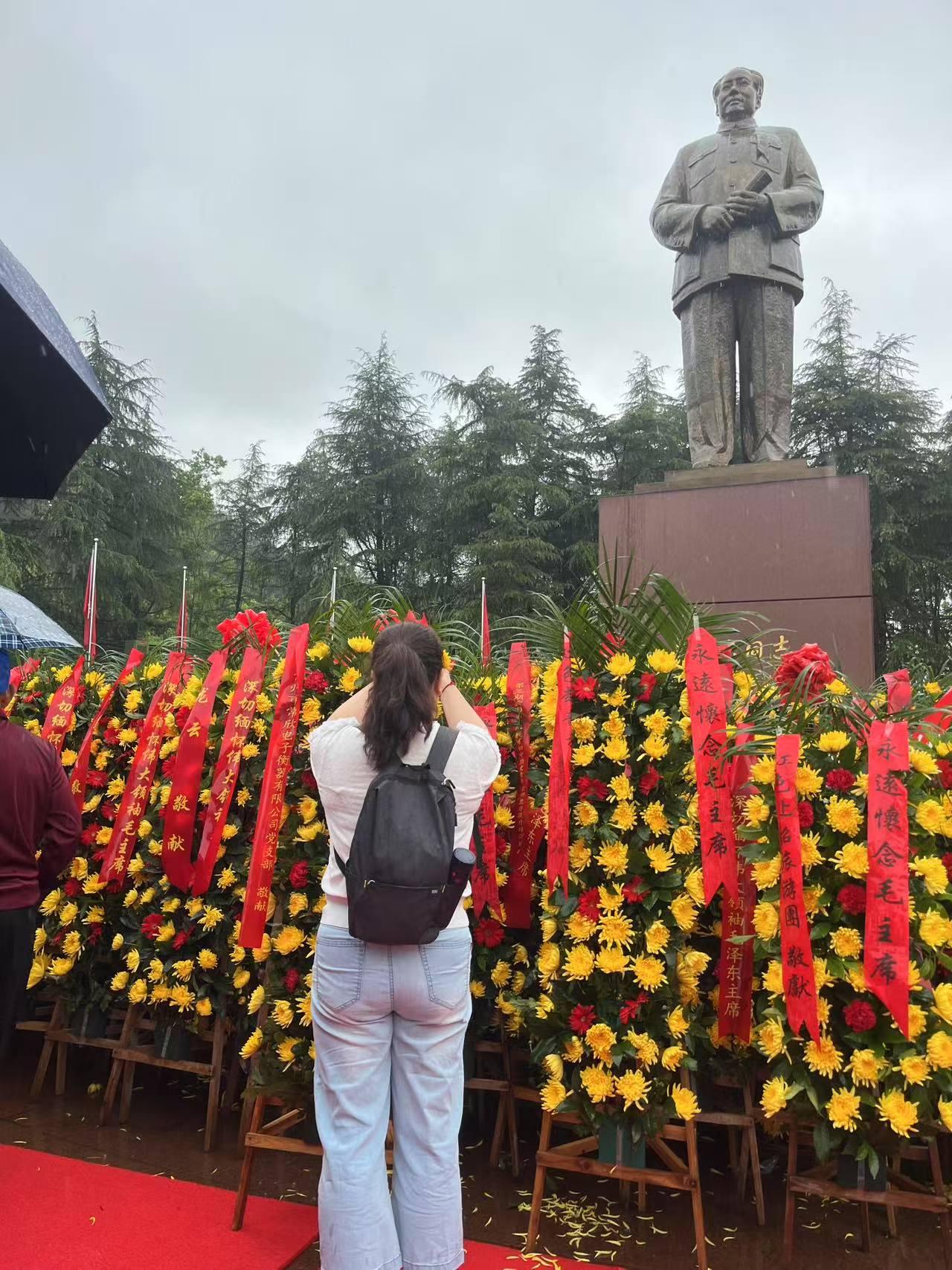 次日,盡管大雨傾盆,卻澆不滅黨員們的熱情。在韶山毛澤東銅像廣場(chǎng),全體黨員莊嚴(yán)肅立,向毛澤東銅像敬獻(xiàn)花籃,深深三鞠躬,表達(dá)對(duì)偉人的無(wú)限崇敬與追思。隨后,大家參觀了毛澤東故居。這座始建于1878年的土木結(jié)構(gòu)農(nóng)舍,是毛澤東誕生和度過(guò)少年時(shí)光的地方 ,屋內(nèi)陳列的舊物,無(wú)聲訴說(shuō)著偉人的成長(zhǎng)經(jīng)歷,激勵(lì)著黨員們不忘初心、艱苦奮斗。滴水洞曾是毛澤東回鄉(xiāng)居住之所,這里靜謐清幽,黨員們?cè)诖烁惺軅ト说募覈?guó)情懷。